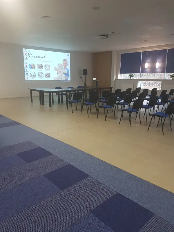 Centrum Rehabilitacji Dzieci „ Creatorek” oferuje możliwość wynajęcia nowoczesnej, bogato wyposażonej sali do wszelkiego rodzaju konferencji, kongresów i szkoleń. Proponujemy salę konferencyjną o wielkości 180 m2 w świetnej lokalizacji – centrum Wrocławia  przy ul. Szybowcowej 23 .